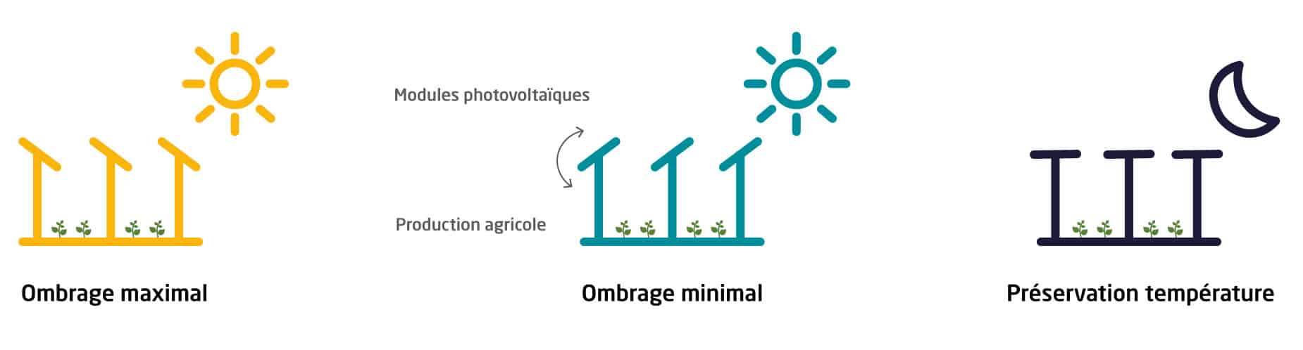 L’avantage est de protéger les cultures des aléas climatiques (gel, pluie, soleil) et d’engendrer une source de revenus complémentaire par la revente de l’électricité produite.