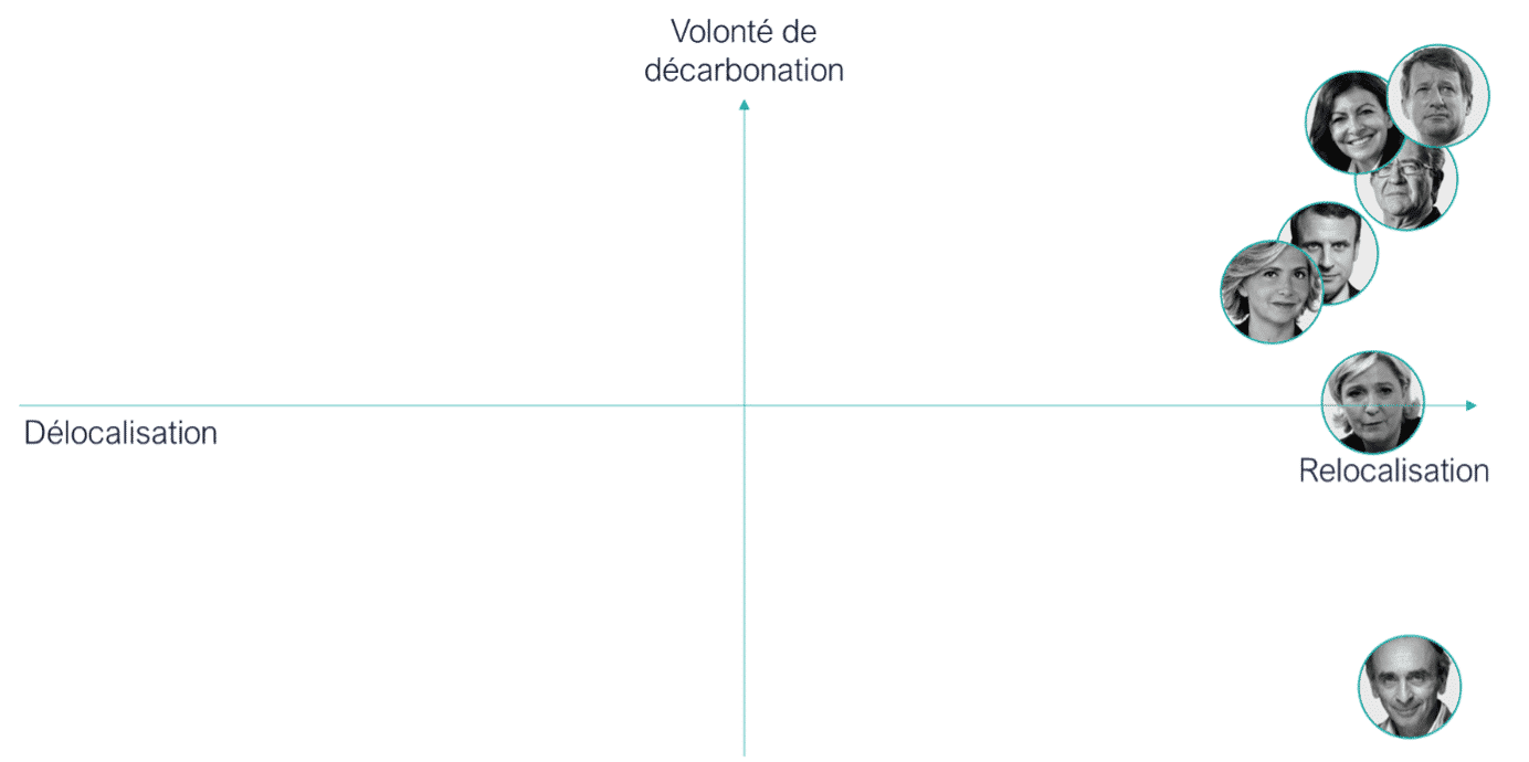 Ainsi, Yannick Jadot, Anne Hidalgo, Fabien Roussel et Jean-Luc Mélenchon se prononcent en faveur d’une relocalisation de l’industrie ainsi que sa décarbonation. Emmanuel Macron souhaite également réindustrialiser la France en développant l’innovation ainsi que les filières françaises.